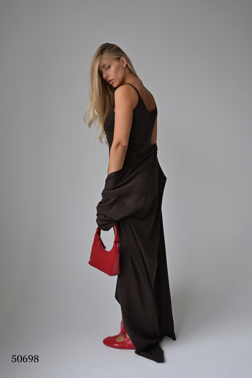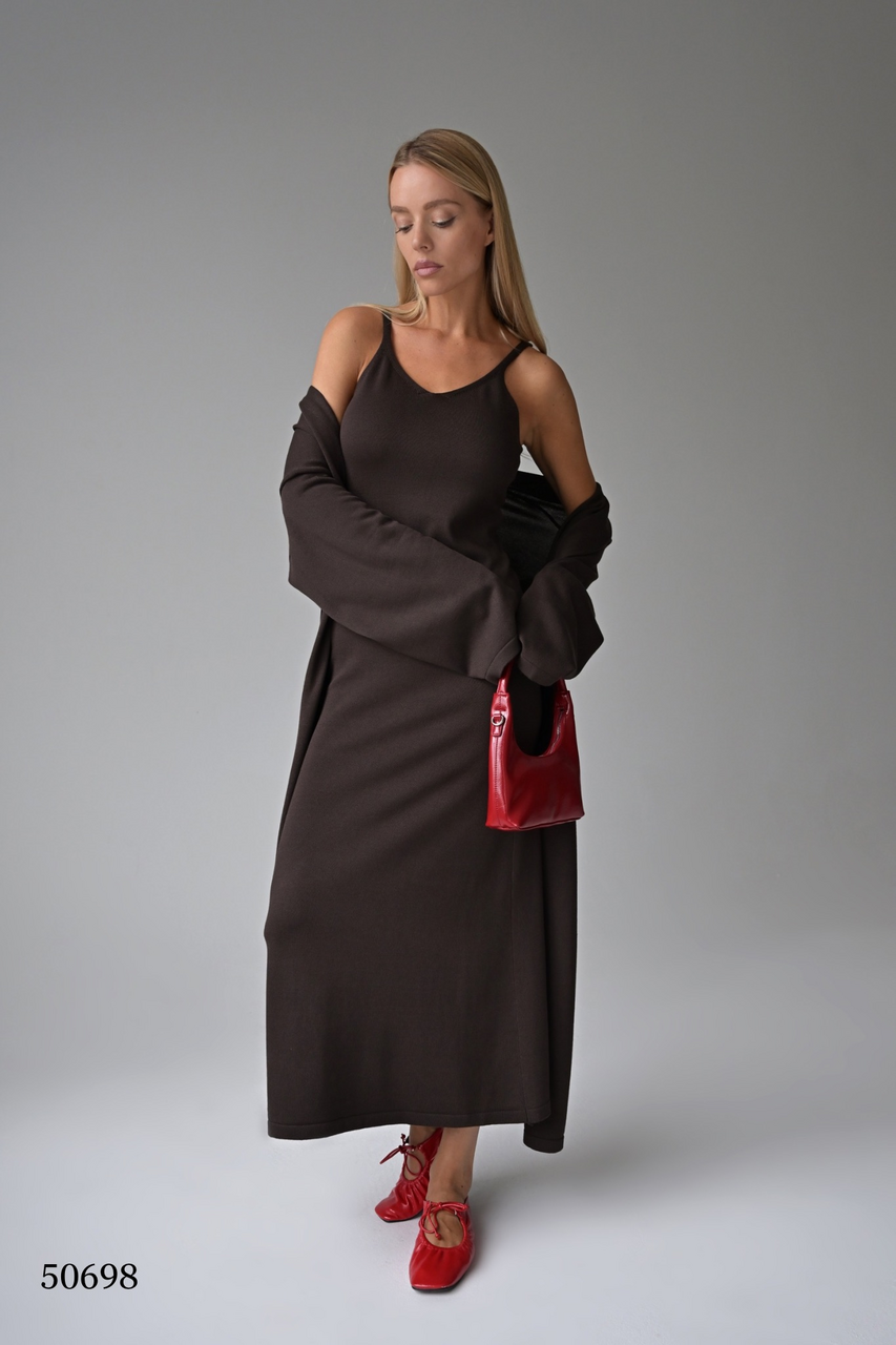 Комплект платье с кардиганом цвет коричневый размер onesize (подходит на rus 42-48) (50698)