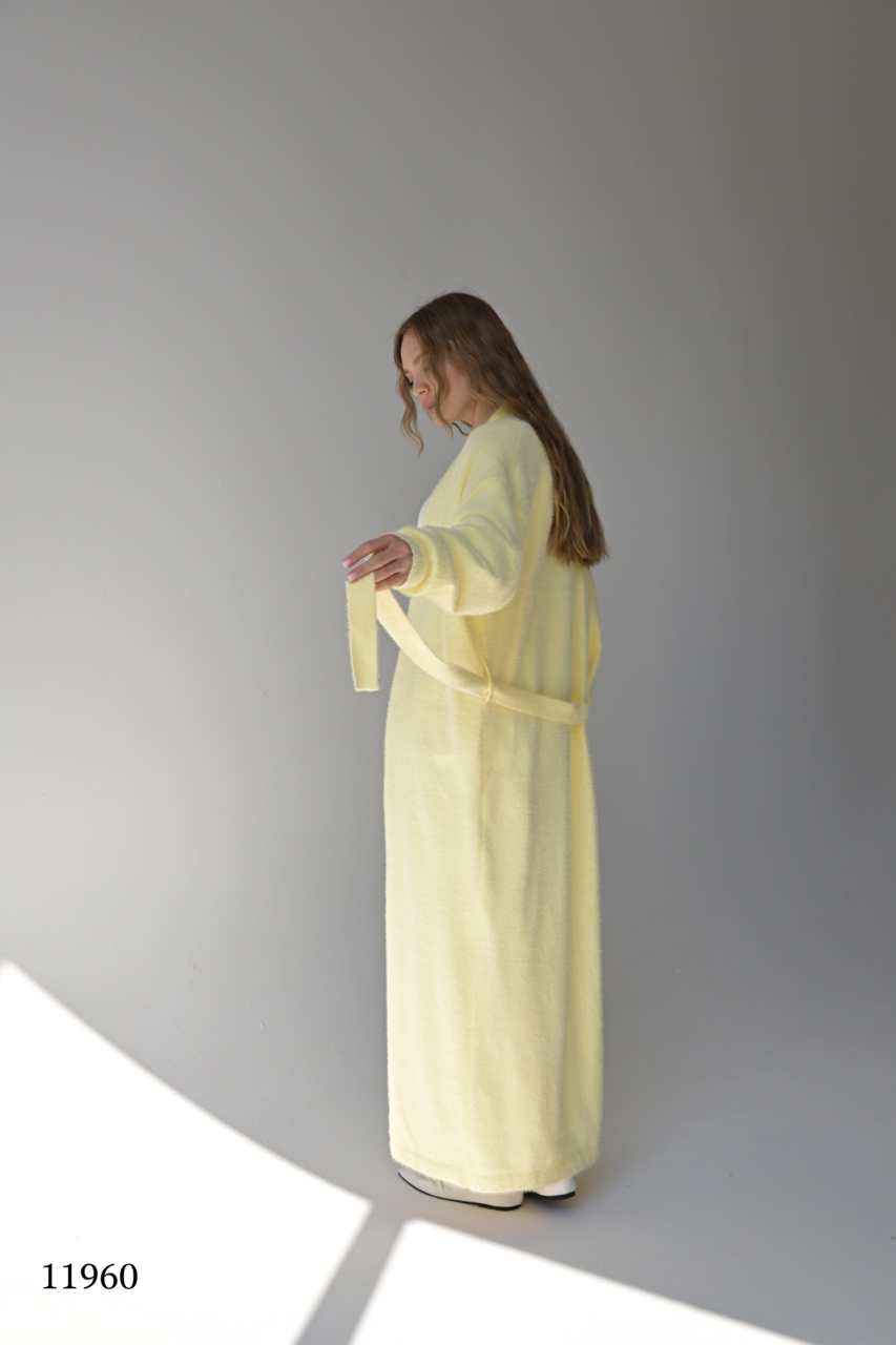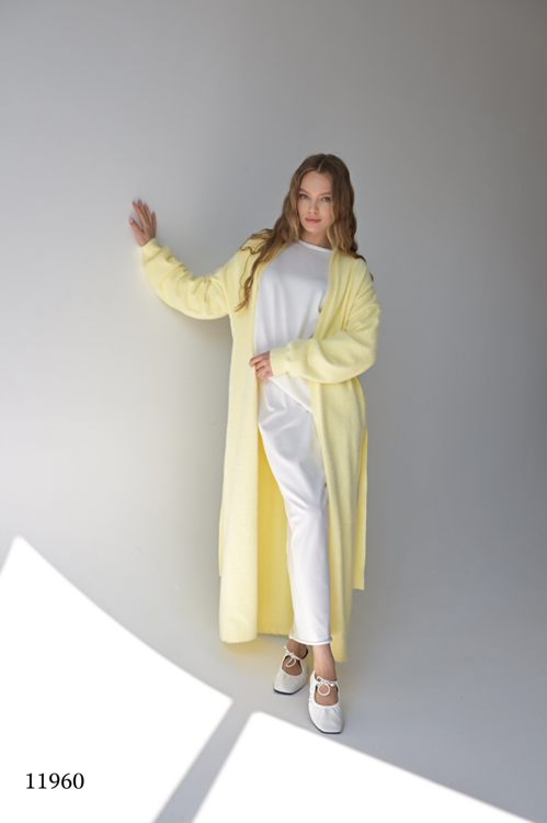 Мягкий кардиган в комплекте с поясом цвет желтый размер onesize (подходит на rus 42-48) (11960). Основные параметры: состав: 100% нейлон полуобхват груди 54см., длина изделия 125см., длина рукава 48см.,