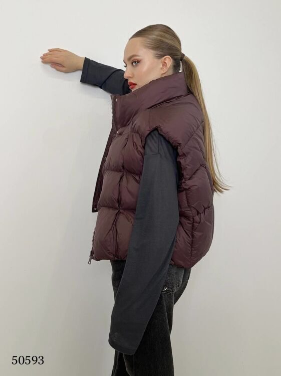 Утепленная жилетка демисезонная цвет сливовый размер rus 42 (50593). Основные параметры: состав: 100% полиэстер полуобхват груди 53см., длина изделия 58см., полуобхват талии 56см.,